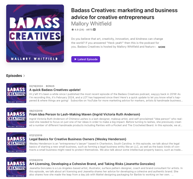 Badass Creatives is a media and education brand I founded to serve artists, makers, and creative entrepreneurs — the indie-spirited misfits who run product-based small businesses and pour their hearts into their craft. The community stands for love, empathy, diversity, and equality, and believes deeply that belonging matters.